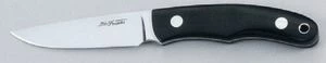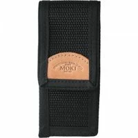 MOKI Messer mit Griffbeschalung aus schwarzem Micarta. Die Klinge ist aus hochwertigem Stahl AUS8 rostfrei. Zu jedem Messer gehört eine Ledersteckscheide. Klingenlänge 85 mm, Gesamtlänge 180 mm